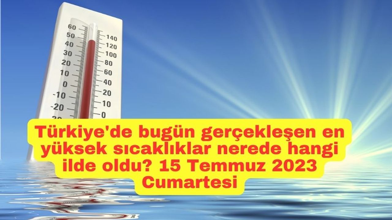 Türkiye'yi etkileyen Afrika çöl sıcakları 15 Temmuz 2023 Cumartesi günü neredeyse ülkenin büyük bir bölümü kavurucu sıcaklardan etkilendi. Vatandaşlar ilimizde, ilçemizde, kasabamızda 15 Temmuz'da bugün en yüksek sıcaklık kaç derece oldu? Antalya, Adana, Mersin, Muğla, Ankara, İstanbul, İzmir, Manisa gibi illerde yaşayanlar bugün en yüksek (maksimum) sıcaklık kaç derece ne kadar oldu sorusunun yanıtını Meteoroloji Genel Müdürlüğünün internet sitesinden alınan verilere göre bugün Cumartesi günü gerçekleşen en yüksek sıcaklıklar şu şekilde olmuştur.
